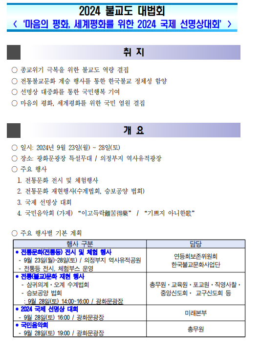 주 관 : 포교원ㆍ교육원ㆍ 직영사찰ㆍ 중앙신도회 ㆍ교구신도회