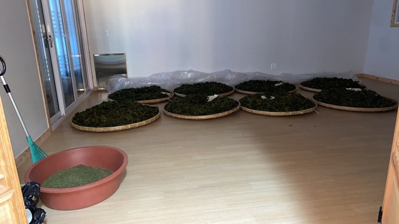 차 공방 따뜻한 방에서 1퍼센트의 수분도 없게 하루를 지내고나서야