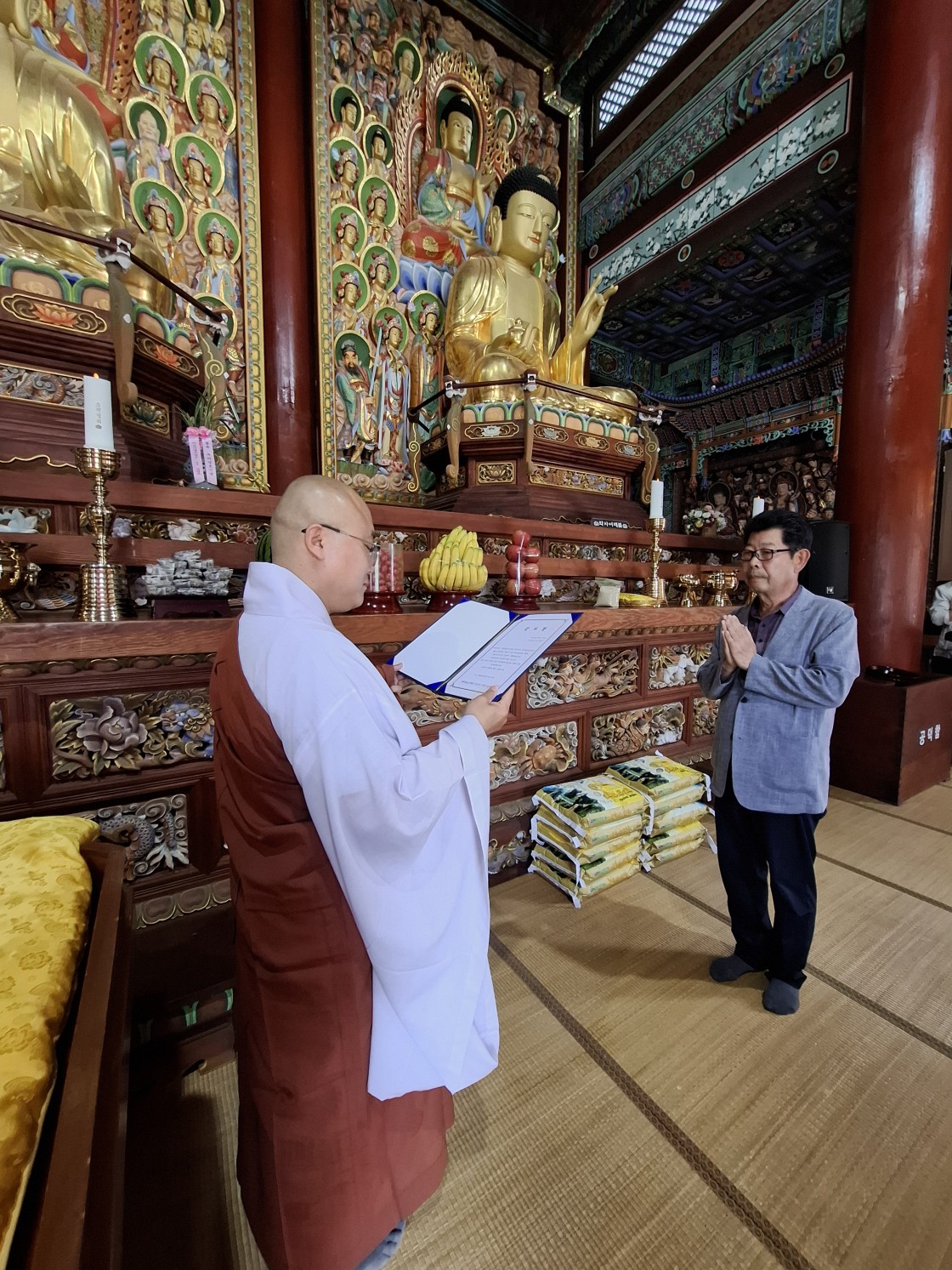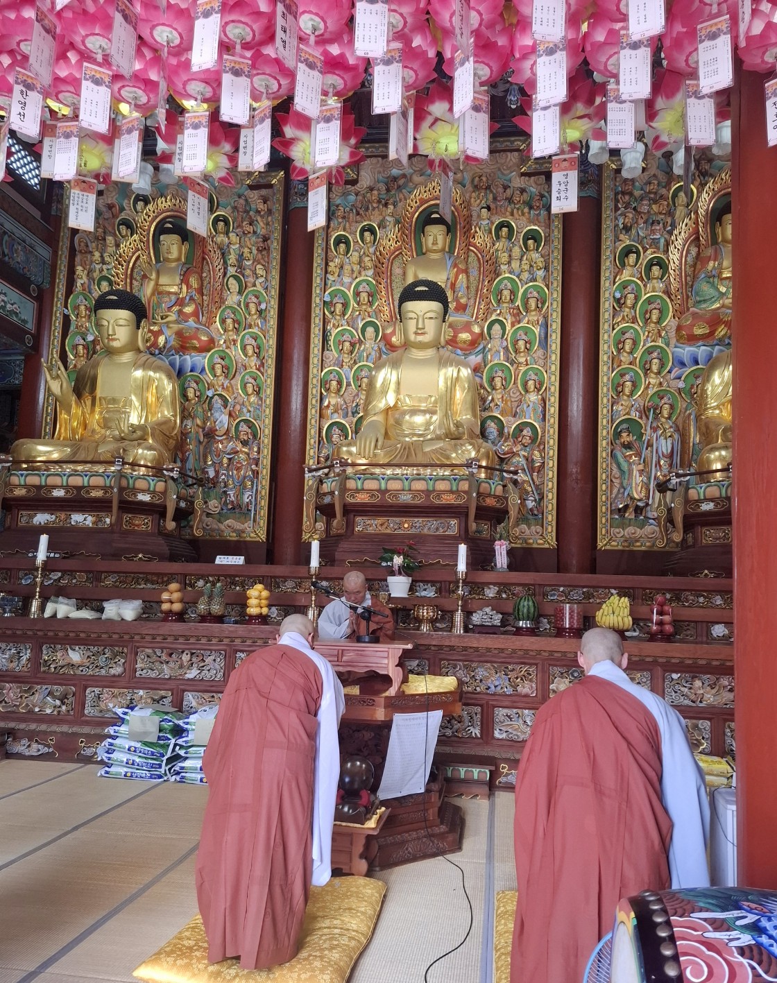 불기2569년 윤달6월 초하루 법회 및 감사장 수여식 페이지 정보 작성자 운영자 작성일25-06-26 11:15 조회411회 댓글0건 본문 불기2569년 윤달 6월 초하루제22교구본사 대흥사 회주이시며 중앙승가대학교 총장이신무생당 월우큰스님의 법문이 있었습니다. 그리고,대략 4년간 도갑사 종무실장의로서의 소임을 다하시고퇴임하시는 한영준 국장님에 대한 감사장 수여식이 있었습니다. 감사합니다.합장 댓글목록 등록된 댓글이 없습니다. 이전글 다음글 목록