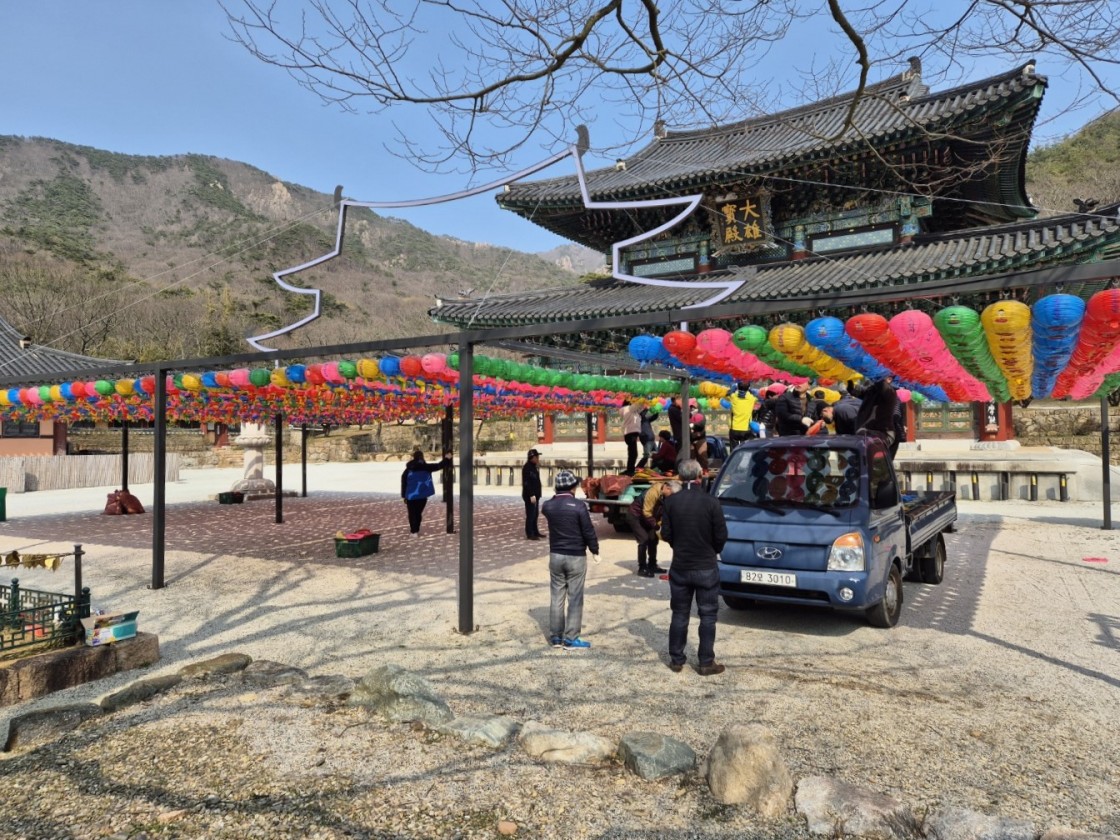 3월 17일 일요일 도갑사 연등 달기 대중운력 사진입니다.