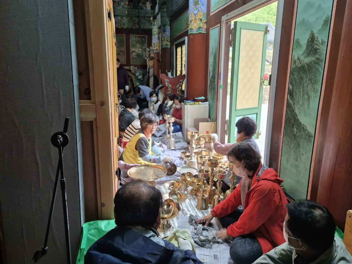 4월 21일 일요일 포교사법회를 마치고 대웅보전에서 불기닦기 운력이 진행되었습니다.