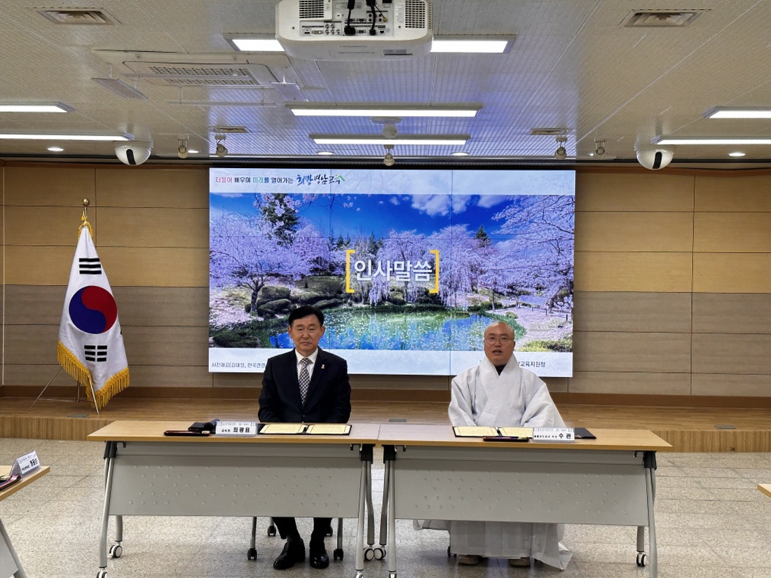영암 교육지원청과 도갑사의 업무협약 체결식