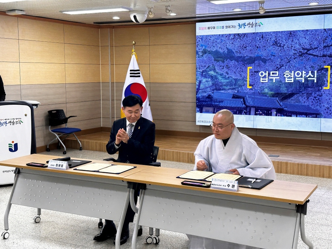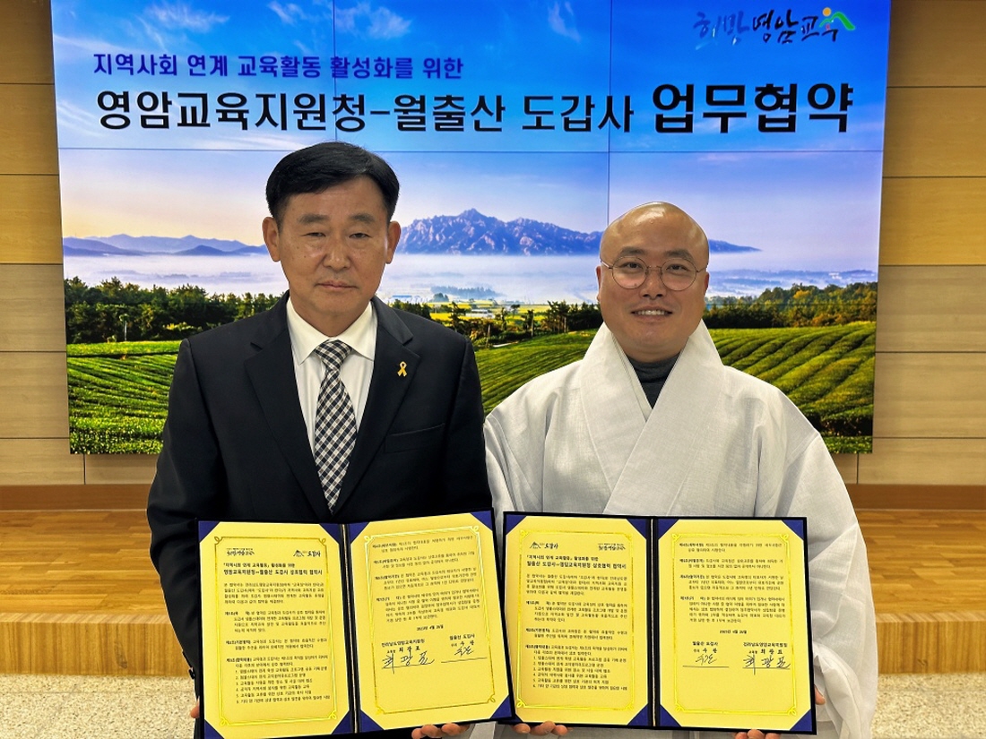 영암교육지원청(교육장 최광표)은 26일 월출산 도갑사(주지 수관)와 생활·인성교육 지원과 지역사회 연계 교육활동 활성화를 위한 업무협약을 체결했다고 밝혔다.